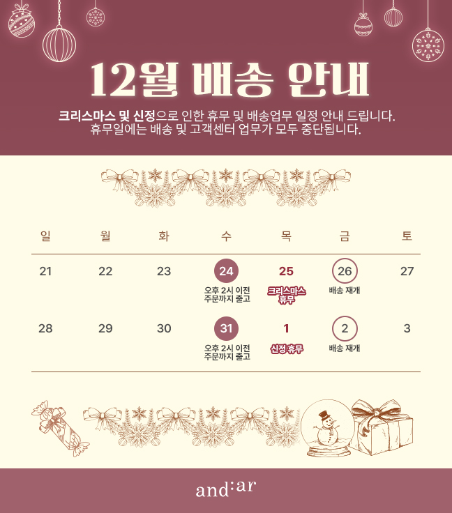 •제품 구매 후의 교환/환불/취소/반품 관련 문의는 마이페이지 > 1:1 문의를 통해 문의 바랍니다.