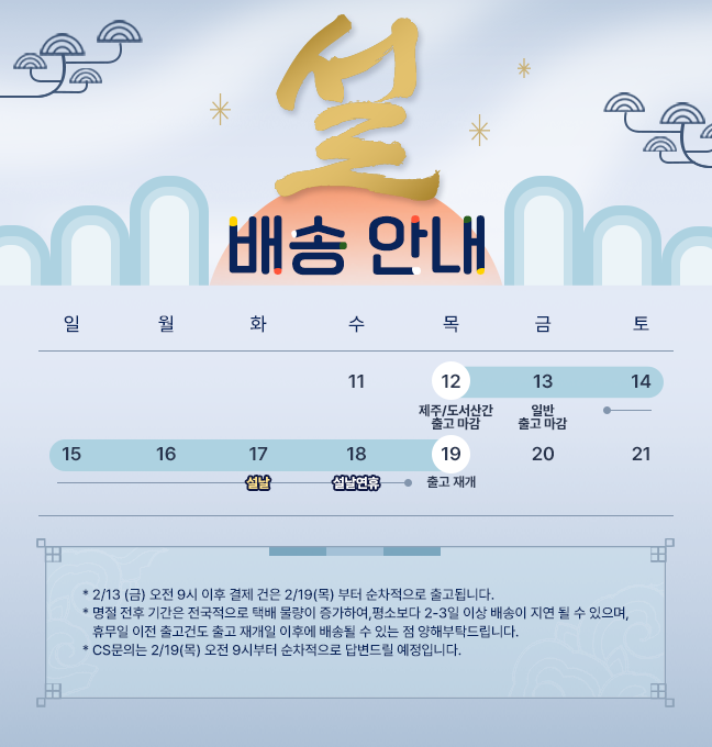 그외 상품은 택배사 또는 브랜드 사정에 따라