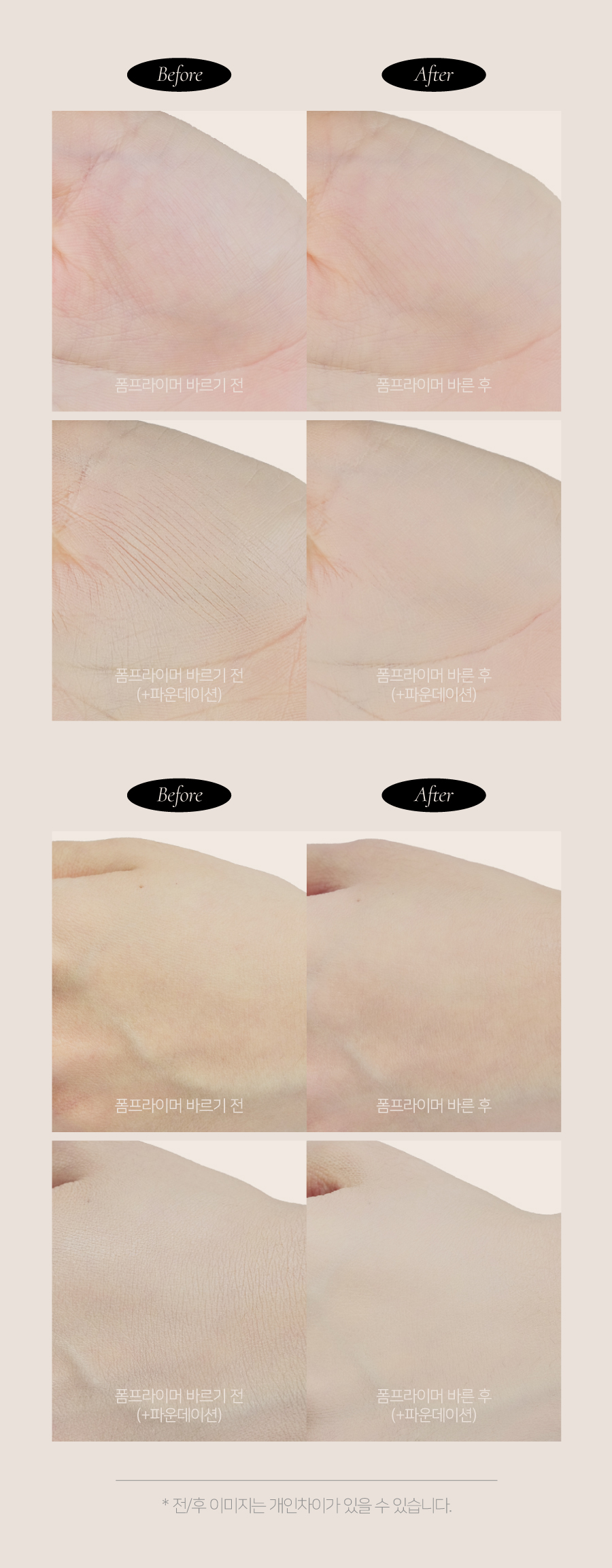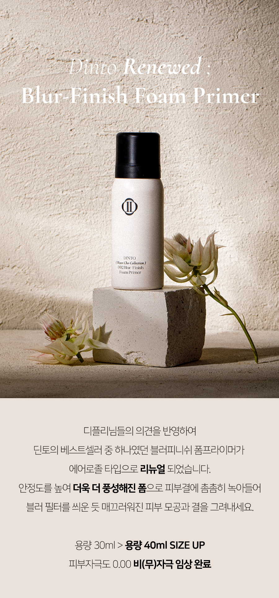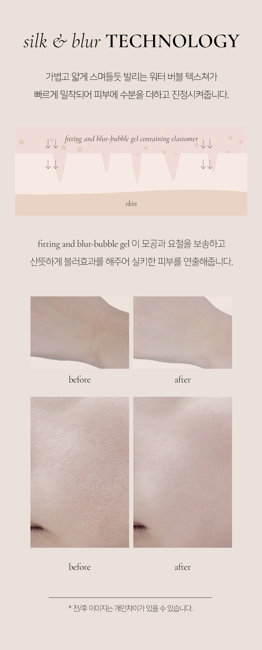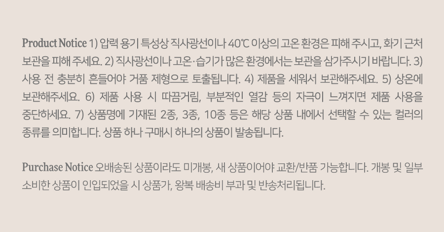 다이메티콘, 정제수, 부탄, 다이메티콘/비닐다이메티콘크로스폴리머, 아이소부탄, 부틸렌글라이콜, 프로판다이올, 폴리글리세릴-10미리스테이트, 1,2-헥산다이올, 티타늄디옥사이드, 글리세린, 피브이피, 소듐스테아로일글루타메이트, 에틸헥실글리세린, 향료, 알란토인, 판테놀, 적색산화철, 카보머, 알지닌, 벤질벤조에이트, 리날룰, 시트로넬올, 아밀신남알, 헥실신남알, 유제놀, 신나밀알코올, 오크라열매추출물, 마뿌리추출물, 카프릴하이드록사믹애씨드, 토코페롤, 멕시칸치아씨추출물, 아마씨추출물, 소듐소이하이드롤라이즈드콜라겐, 포도껍질추출물, 라벤더꽃추출물, 레몬추출물