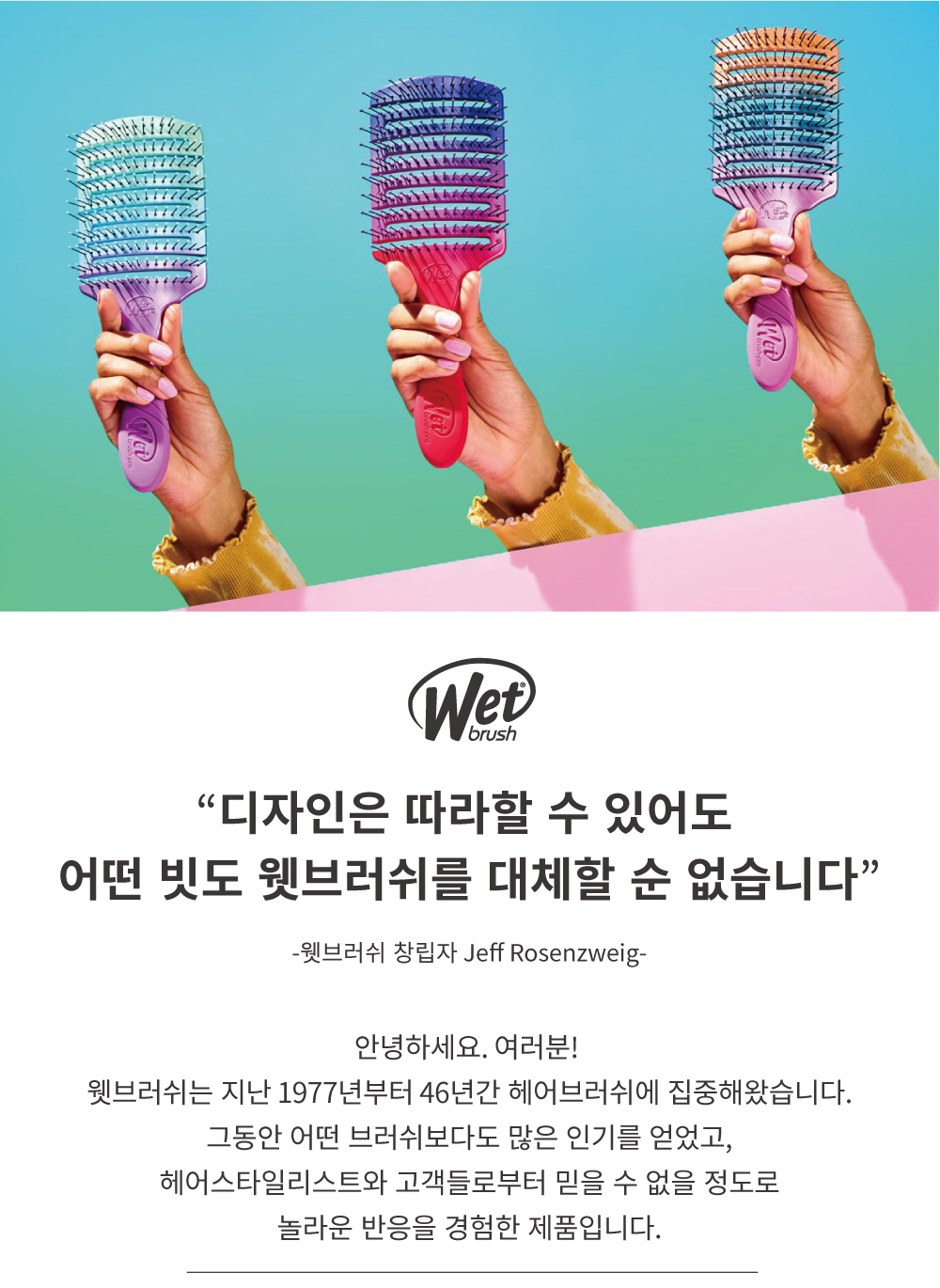 •웻브러쉬는 46년 노하우를 고스란히 담아 미국에서 탄생한 웻브러쉬는 프리미엄 헤어 브러쉬 글로벌 브랜드 입니다.