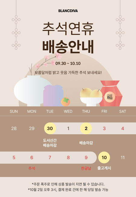 •제품 구매 후의 교환/환불/취소/반품 관련 문의는 마이페이지 > 1:1 문의를 통해 문의 바랍니다.