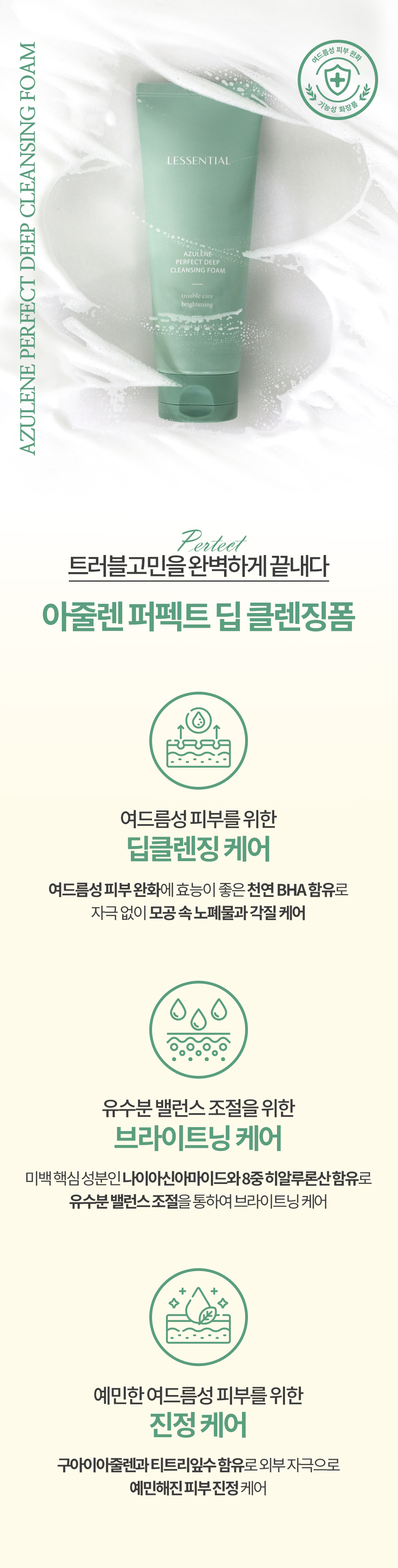 정제수,미리스틱애씨드,글리세린,포타슘하이드록사이드,스테아릭애씨드,글리세릴스테아레이트,프로판다이올,팔미틱애씨드,코카미도프로필베타인,소듐C14-16올레핀설포네이트,살리실릭애씨드,솔비톨,부틸렌글라이콜,소듐메틸코코일타우레이트,소듐클로라이드,아크릴레이트/C10-30알킬아크릴레이트크로스폴리머,향료,폴리쿼터늄-7,세테아릴알코올,포타슘벤조에이트,하이드로제네이티드폴리데센,소듐시트레이트,트라이소듐에틸렌다이아민다이석시네이트,나이아신아마이드,티트리잎수,소듐벤조에이트,판테놀,시트릭애씨드,파스향나무잎추출물,흰버드나무껍질추출물,소듐구아이아줄렌설포네이트,1,2-헥산다이올,다이소듐이디티에이,티트리잎추출물,소듐하이알루로네이트,펜틸렌글라이콜,카프릴릴글라이콜,폴리글루타믹애씨드,하이알루로닉애씨드,하이드롤라이즈드하이알루로닉애씨드,하이드록시프로필트라이모늄하이알루로네이트,하이드롤라이즈드소듐하이알루로네이트,포타슘하이알루로네이트,소듐하이알루로네이트크로스폴리머,소듐아세틸레이티드하이알루로네이트