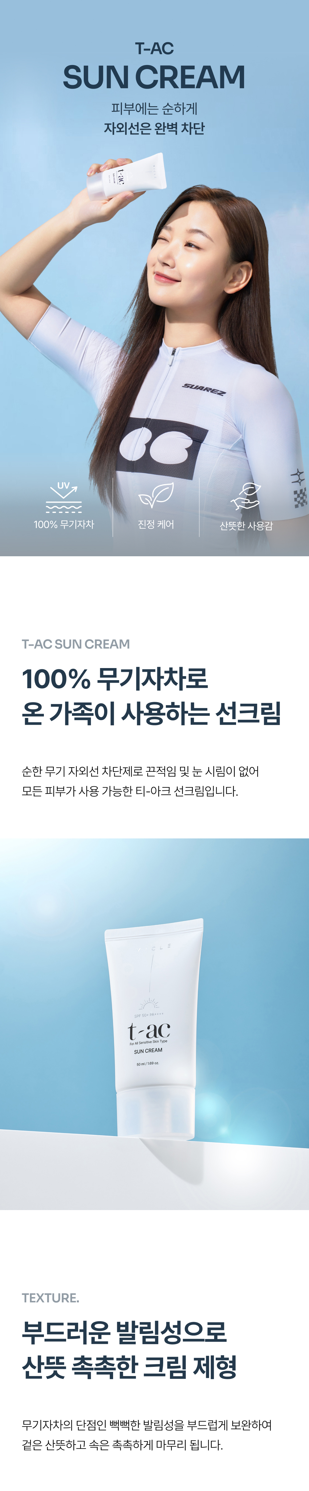 •순한 무기자차로 끈적임 및 눈 시림이 없어 모든 피부가 사용 가능한 티아크 선크림입니다.