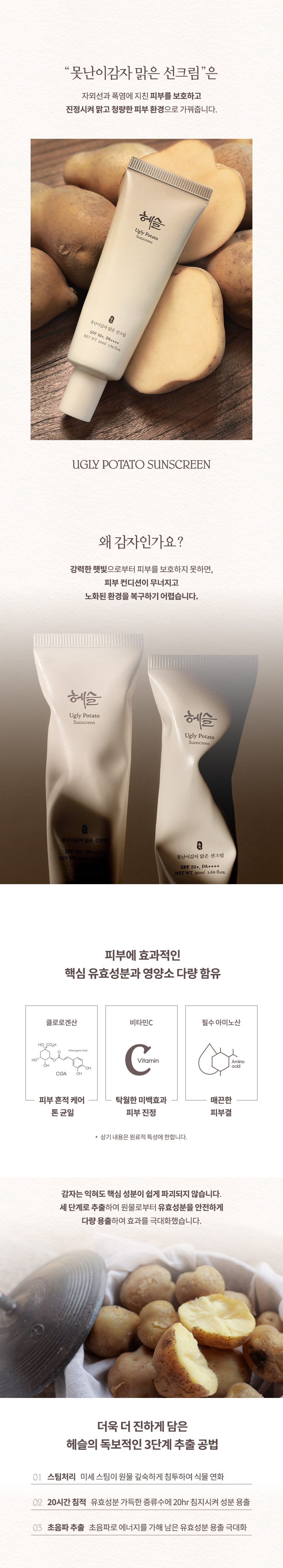 •피부미백과 진정에 효과적인 유기자차 감자 선크림